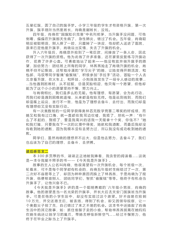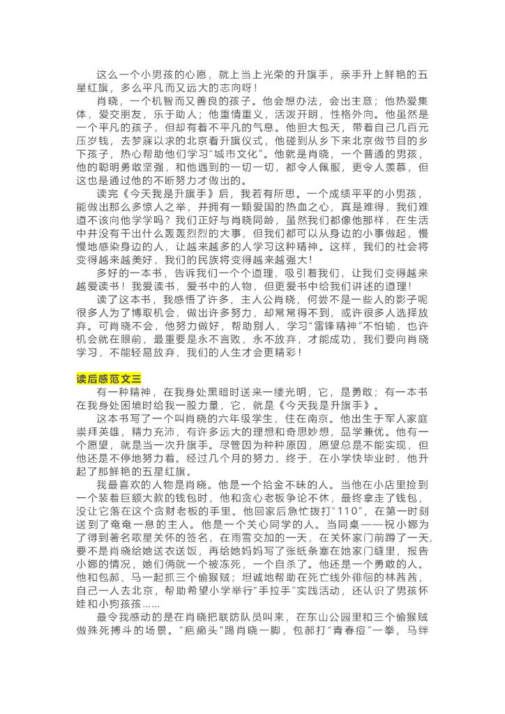 07《今天我是升旗手》精彩片段+读后感.doc