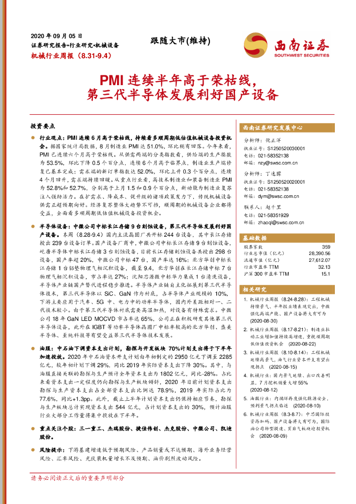 西南证券:机械行业周报:PMI连续半年高于荣枯线,第三代半导体发展利好国产设备.pdf