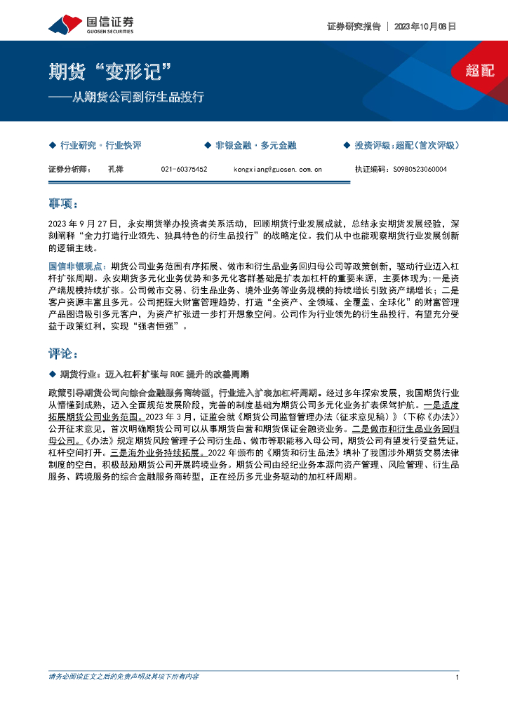 国信证券:多元金融:从期货公司到衍生品投行-期货“变形记”.pdf