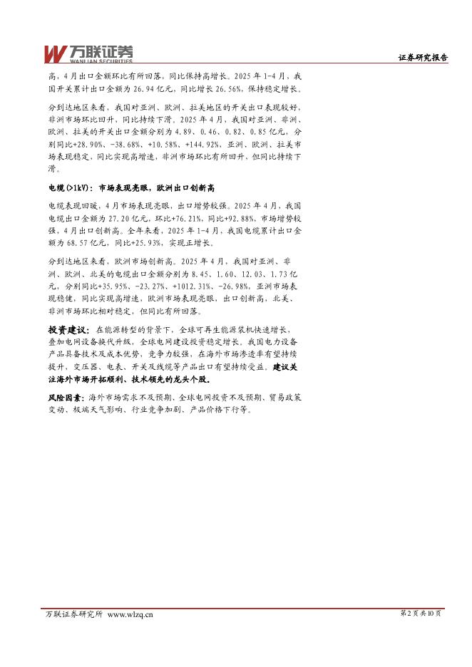 万联证券:电力设备行业跟踪报告:电力设备出口:市场整体稳健,电缆出口表现亮眼.pdf