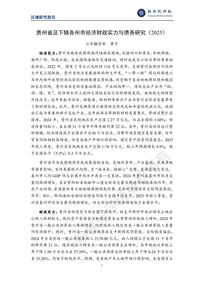 新世纪评级:贵州省及下辖各州市经济财政实力与债务研究(2025).pdf