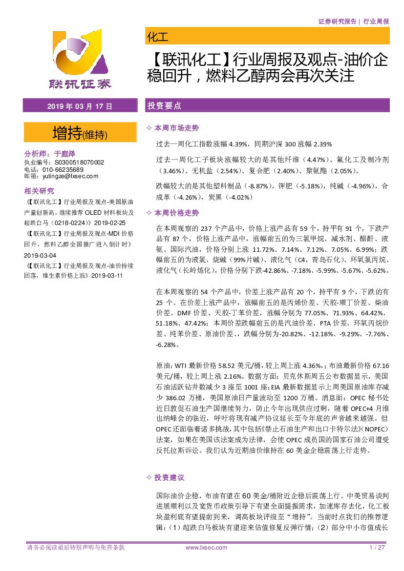 联讯证券:【联讯化工】行业周报及观点-油价企稳回升,燃料乙醇两会再次关注.pdf