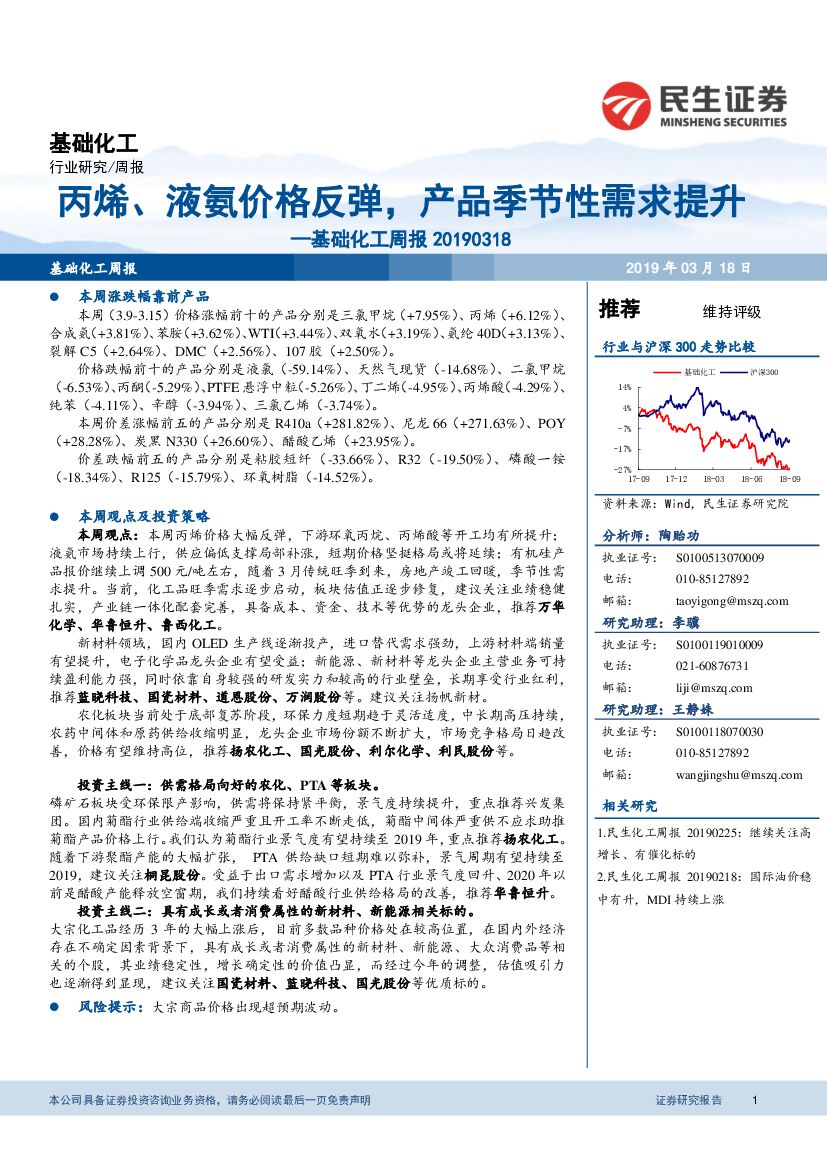 民生证券:基础化工周报:丙烯、液氨价格反弹,产品季节性需求提升.pdf