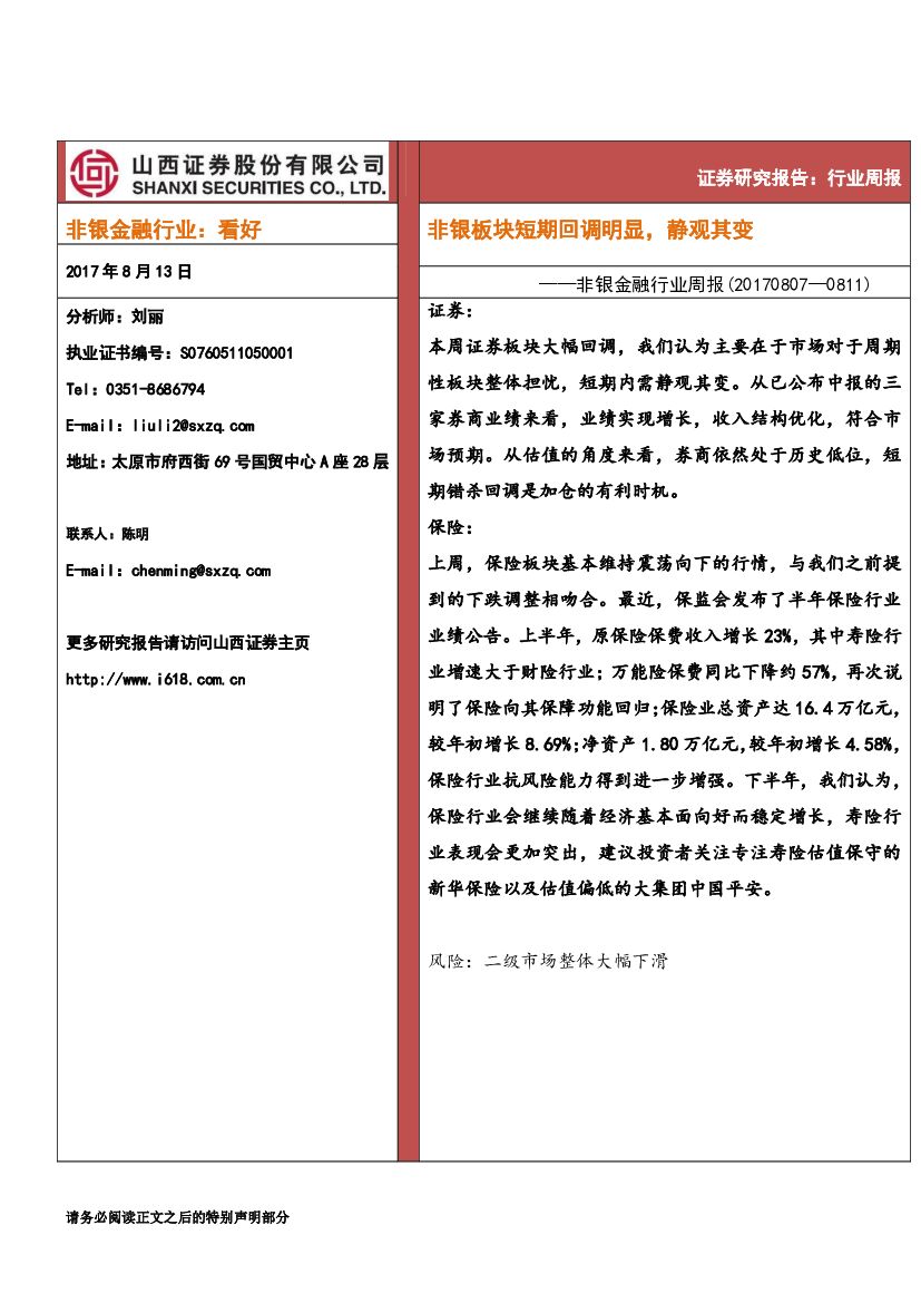 山西证券:非银金融行业周报:非银板块短期回调明显,静观其变.pdf