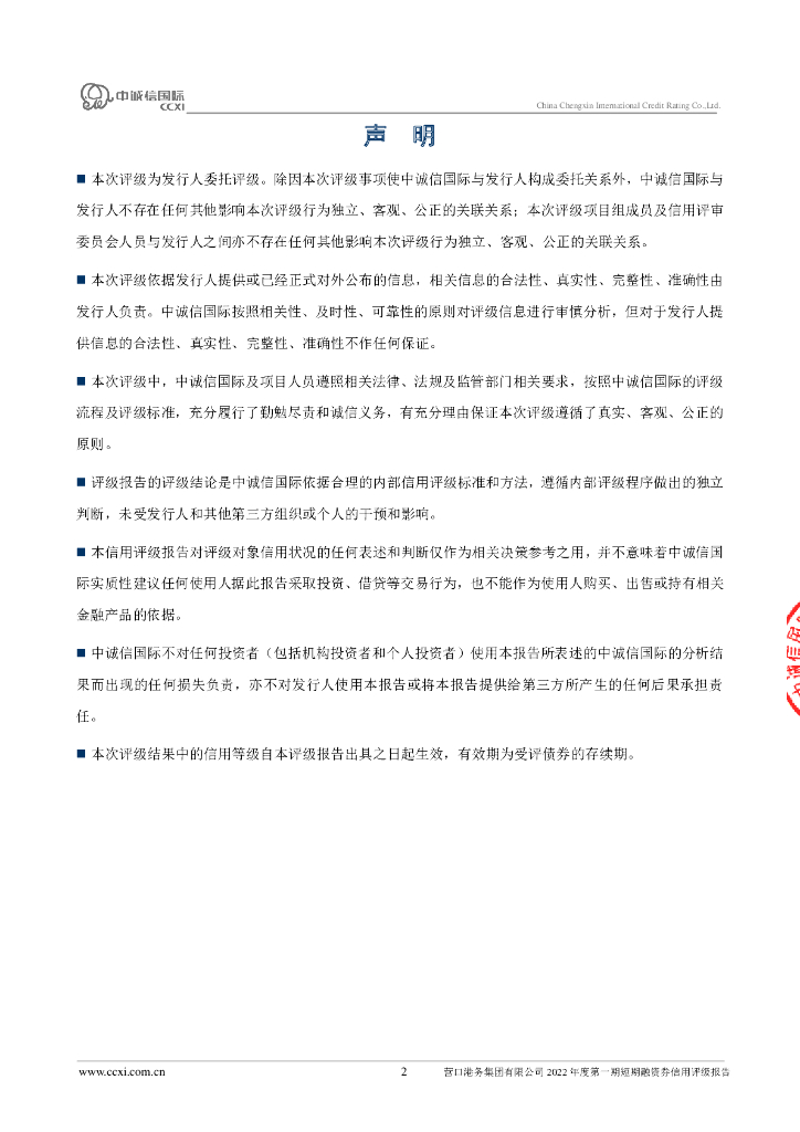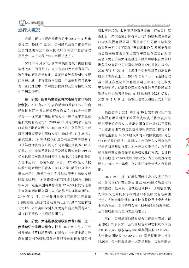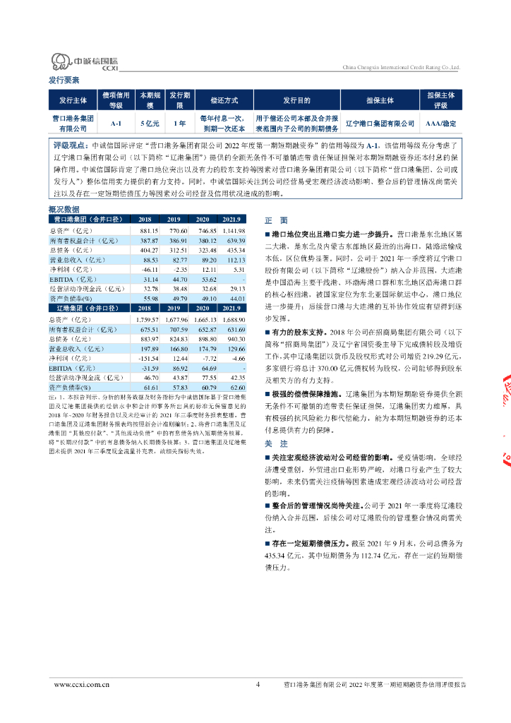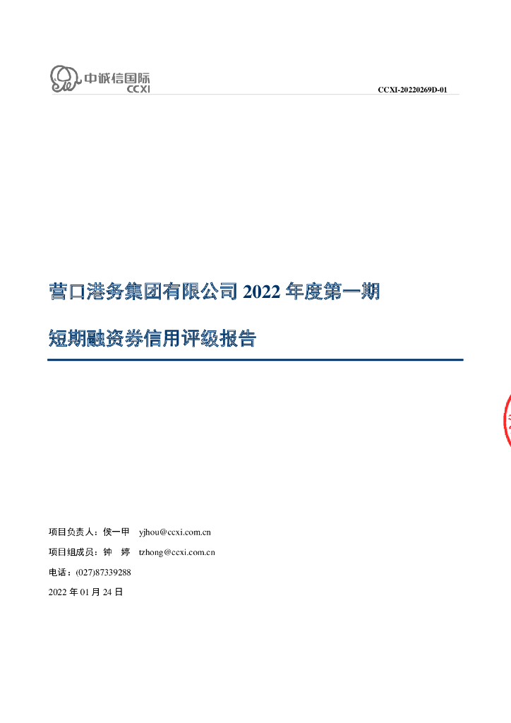 中诚信:营口港务集团有限公司2022年度第一期短期融资券信用评级报告.pdf