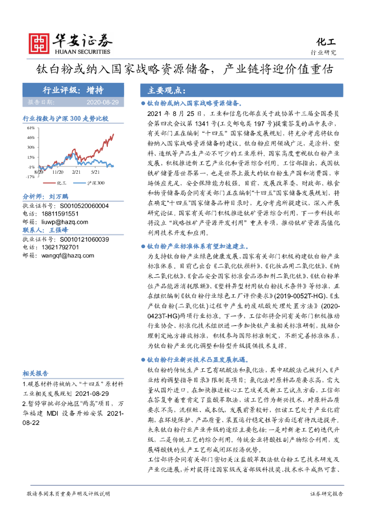 华安证券:化工:钛白粉或纳入国家战略资源储备,产业链将迎价值重估.pdf