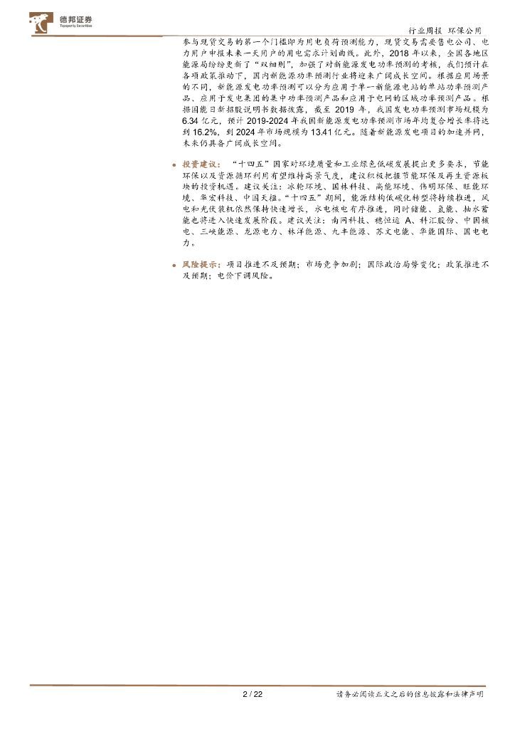 德邦证券:环保与公用事业周报:推进新能源发电项目加速并网,新能源功率预测或迎爆发期.pdf