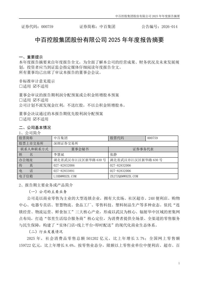 000759-中百集团:2025年年度报告摘要.pdf