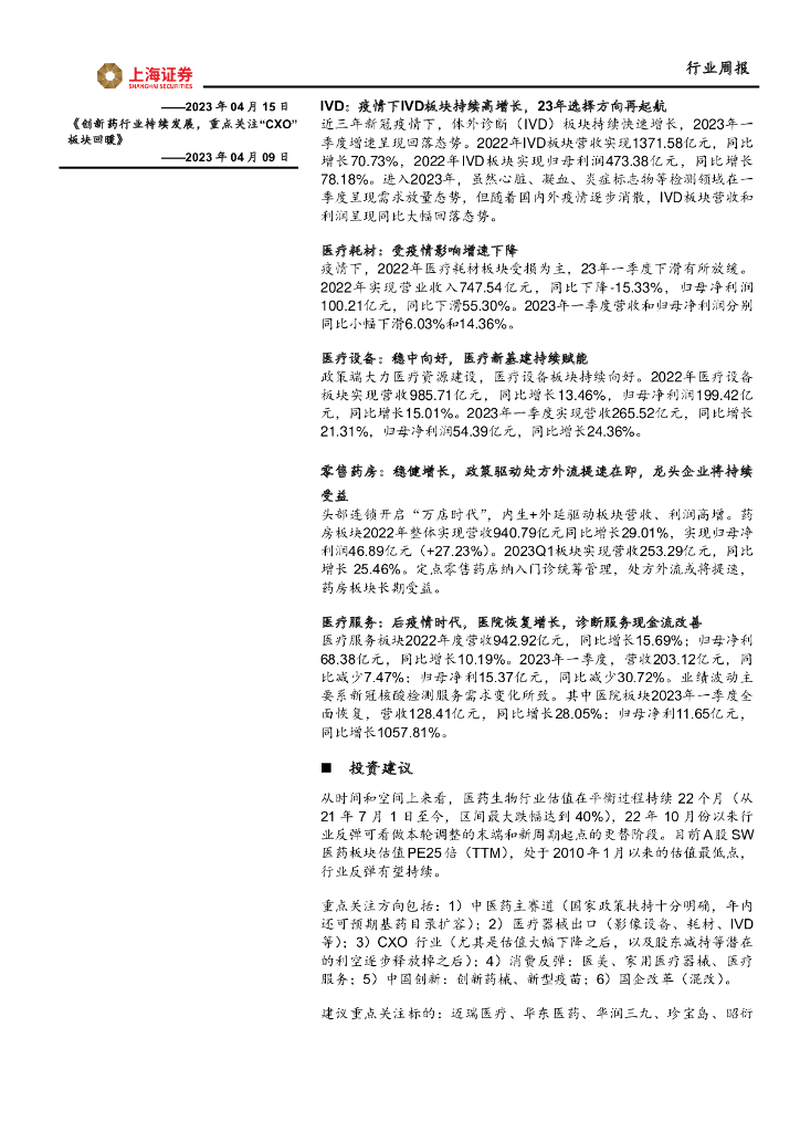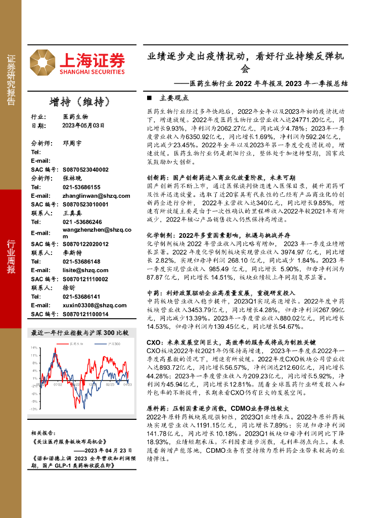 上海证券:医药生物行业2022年年报及2023年一季报总结:业绩逐步走出疫情扰动,看好行业持续反弹机会.pdf