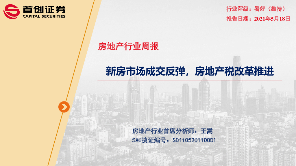 首创证券:房地产行业周报:新房市场成交反弹,房地产税改革推进.pdf