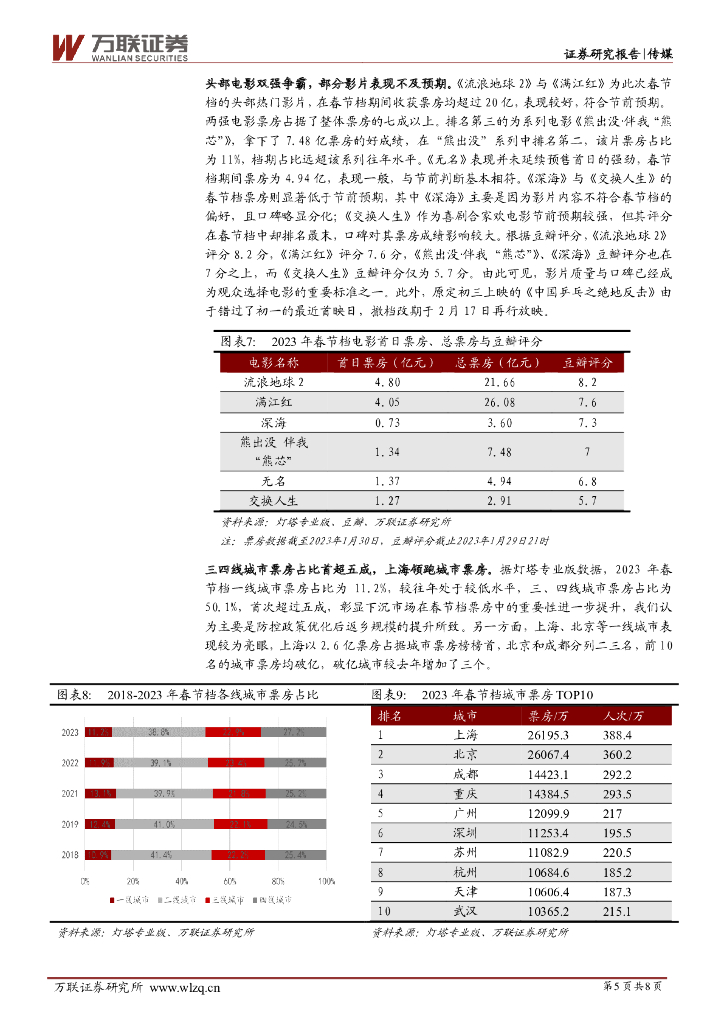 万联证券:传媒行业跟踪报告:春节档票房影史第二,行业强复苏可期.pdf