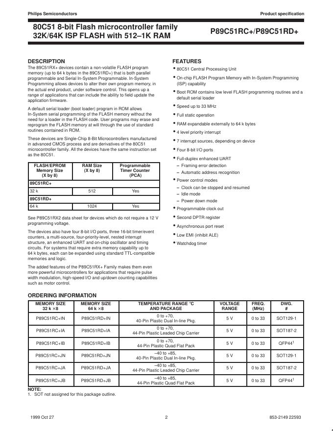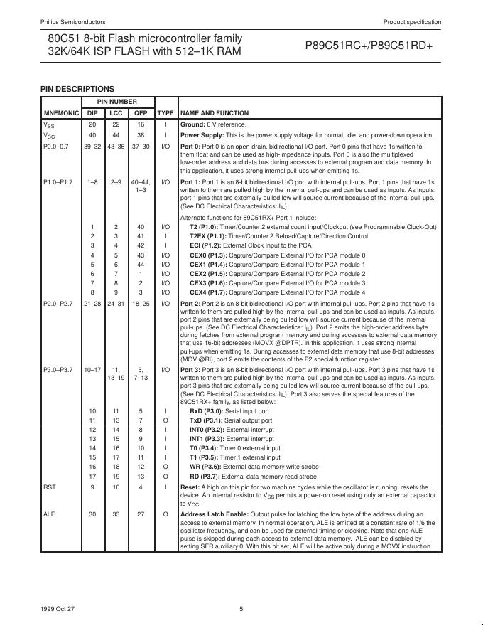 philips P89C51RC+/P89C51RD+ 80C51 8-bit Flash microcontroller family 数据手册.pdf