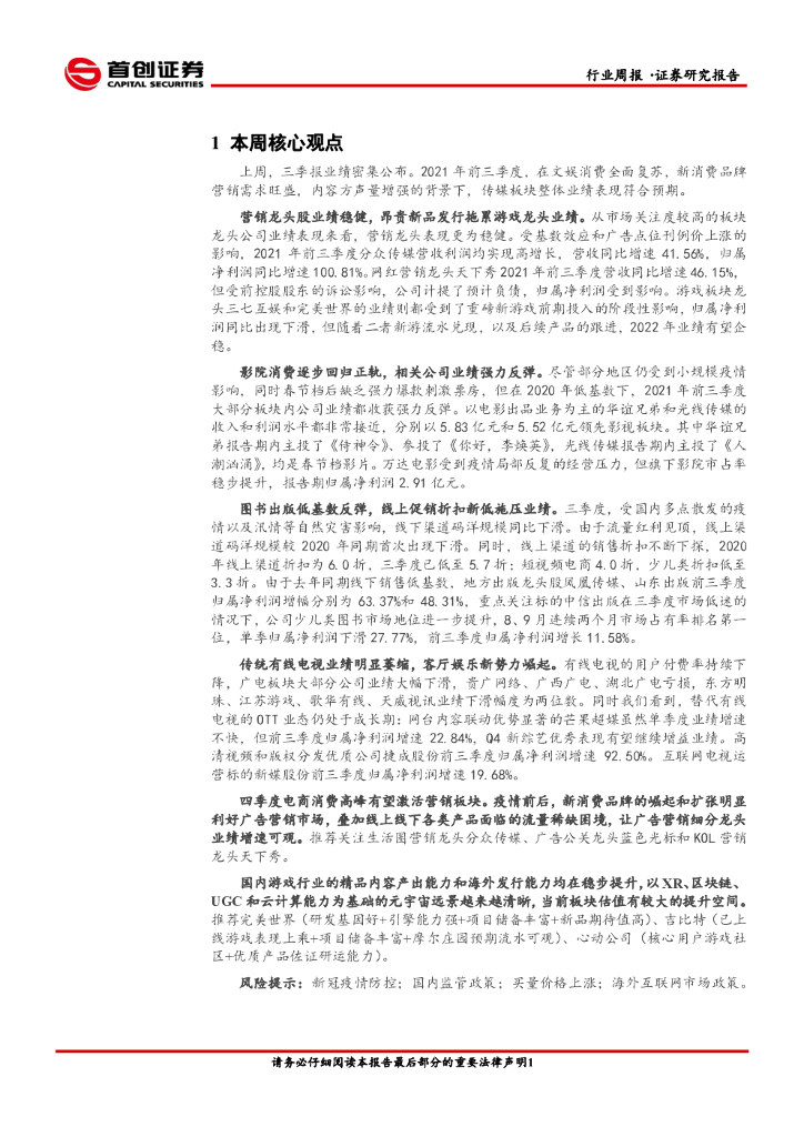 首创证券:传媒行业周报:文娱消费复苏带动业绩,看好营销、游戏板块龙头.pdf