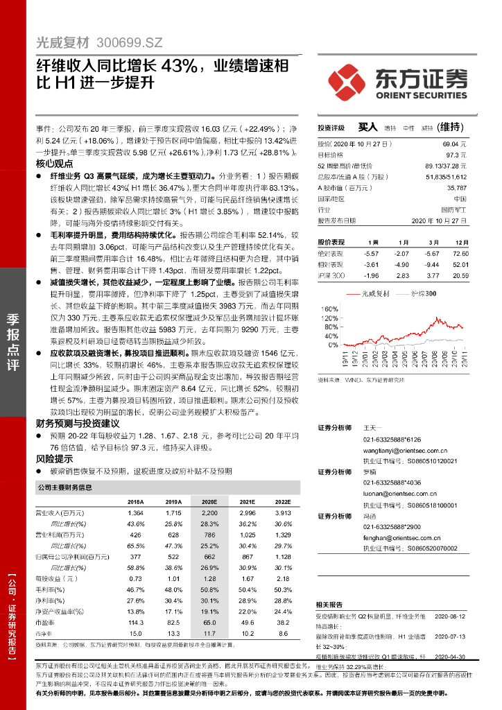 东方证券:光威复材(300699)-纤维收入同比增长43%,业绩增速相比H1进一步提升.pdf