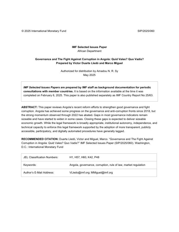 国际货币基金组织:安哥拉的治理与反腐败斗争:你价值什么?你要去哪里?(英文版).pdf