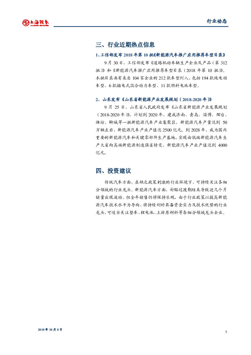 上海证券:汽车行业周报:工信部发布2018年第10批《新能源汽车推广应用推荐车型目录》.pdf