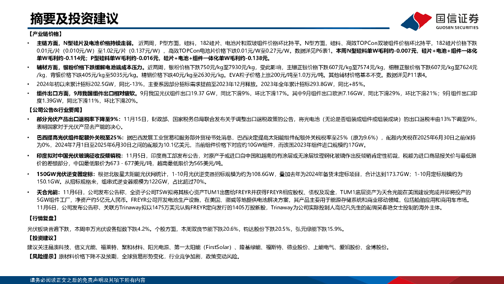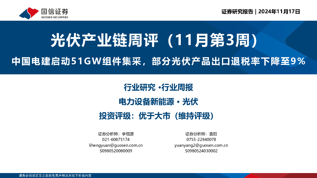 国信证券:光伏产业链周评(11月第3周):中国电建启动51GW组件集采,部分光伏产品出口退税率下降至9%.pdf