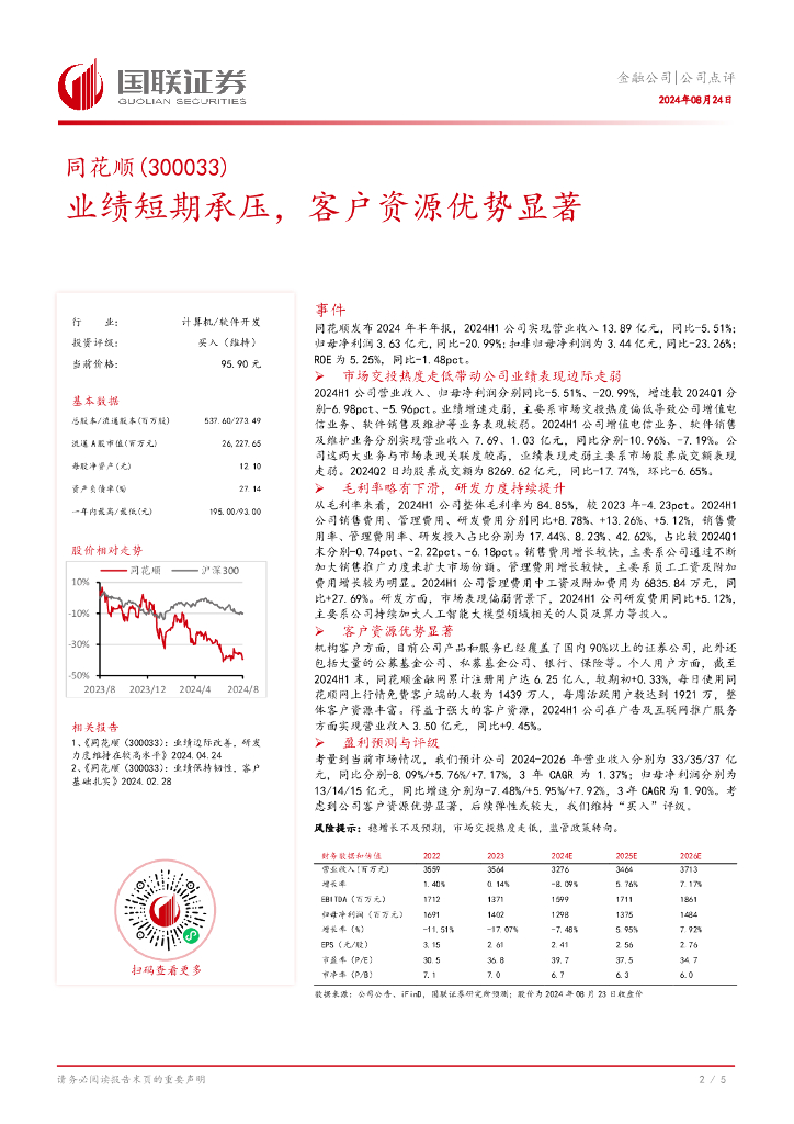 国联证券:同花顺(300033)-业绩短期承压,客户资源优势显著.pdf