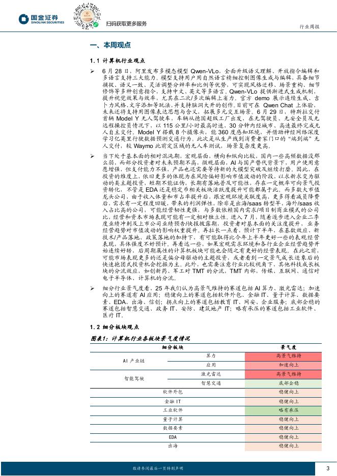 国金证券:计算机行业周报:阿里发布多模态模型Qwen-VLo,特斯拉交付首例ModelY自动驾驶汽车.pdf