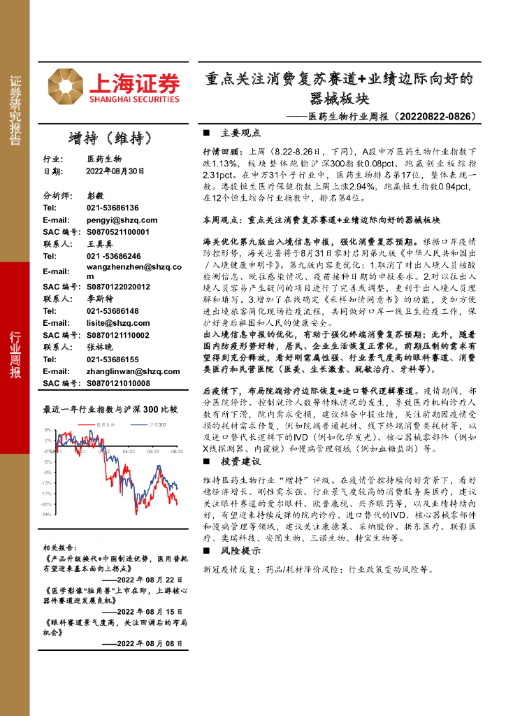 上海证券:医药生物行业周报:重点关注消费复苏赛道+业绩边际向好的器械板块.pdf