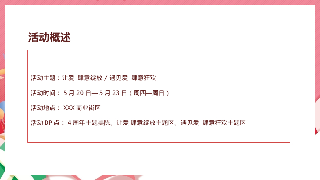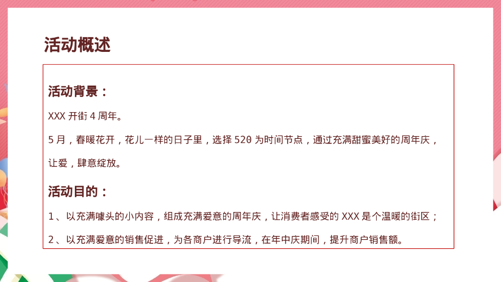 商业广场四周年庆系列“让爱肆意绽放”主题活动策划方案.ppt
