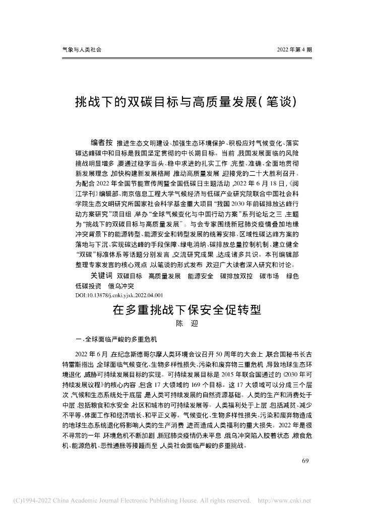 唐人虎:挑战下的双碳目标与高质量发展(笔谈).pdf