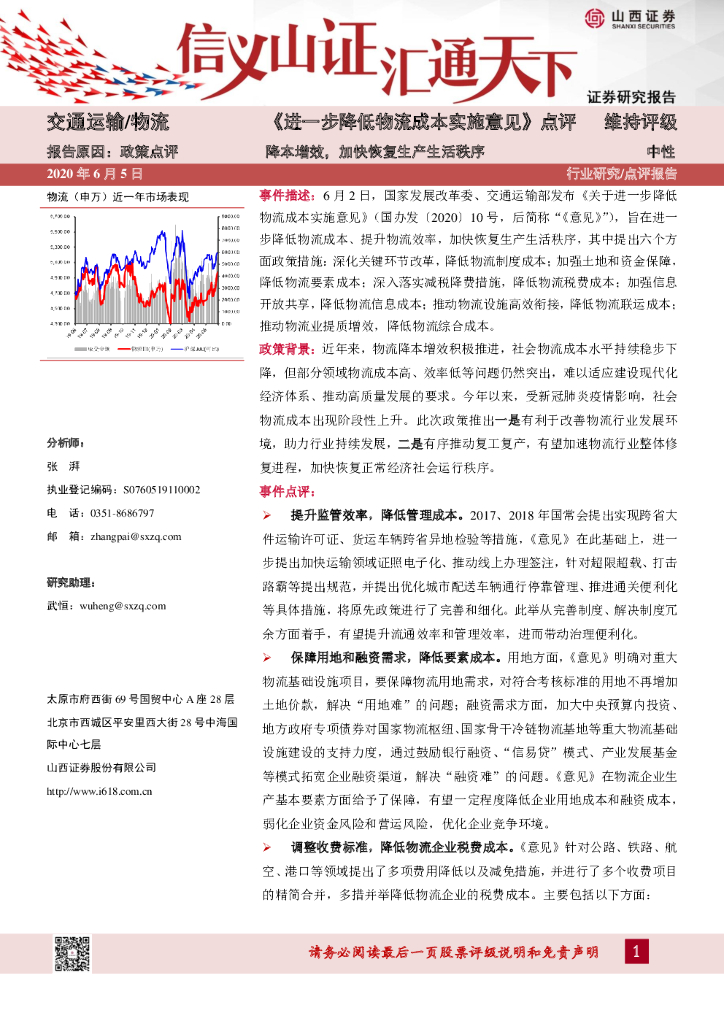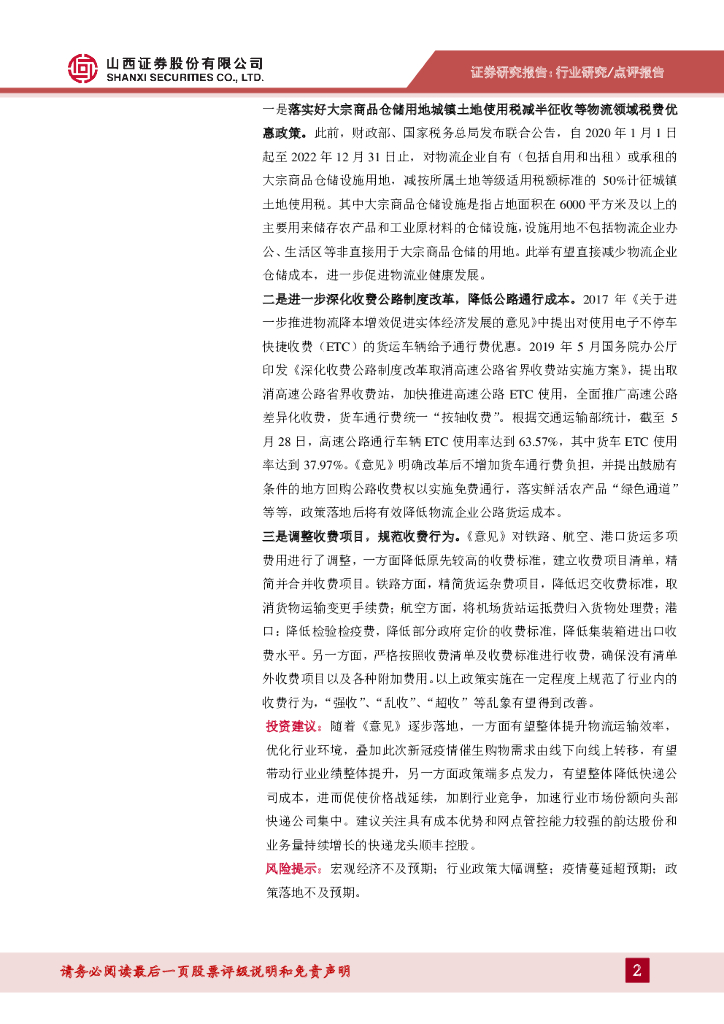 山西证券:《进一步降低物流成本实施意见》点评:降本增效,加快恢复生产生活秩序.pdf