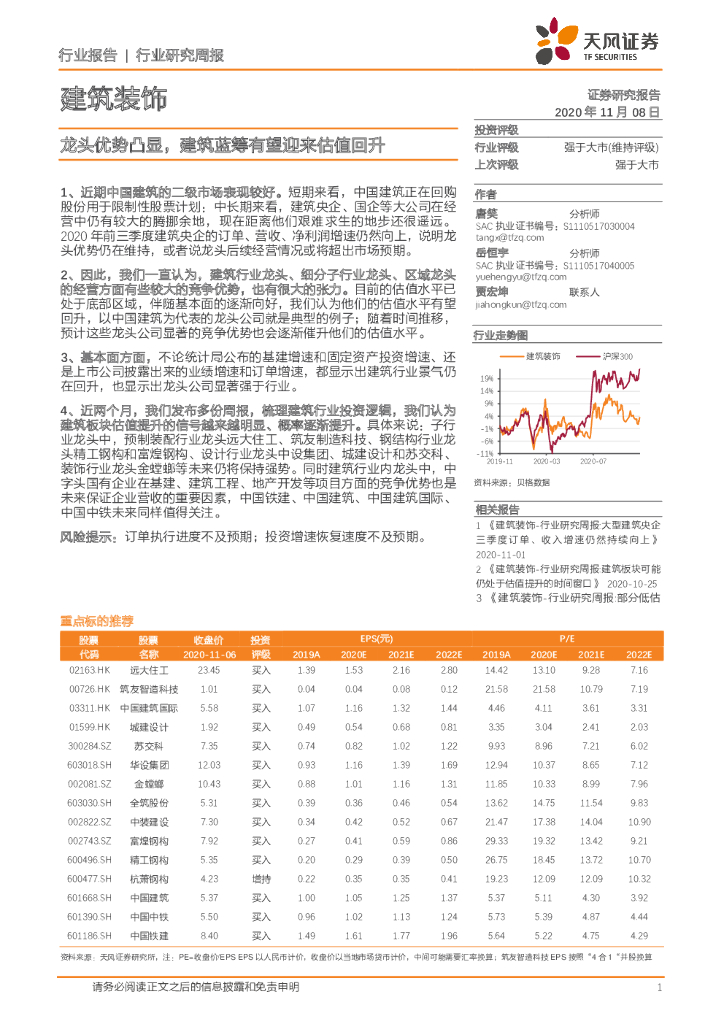 天风证券:建筑装饰行业研究周报:龙头优势凸显,建筑蓝筹有望迎来估值回升.pdf