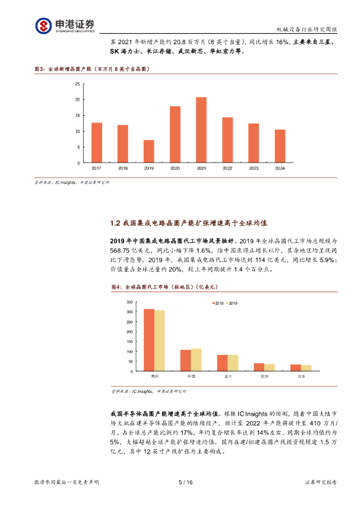 申港证券:机械设备行业研究周报:我国半导体晶圆产能扩张增速高于全球均值.pdf