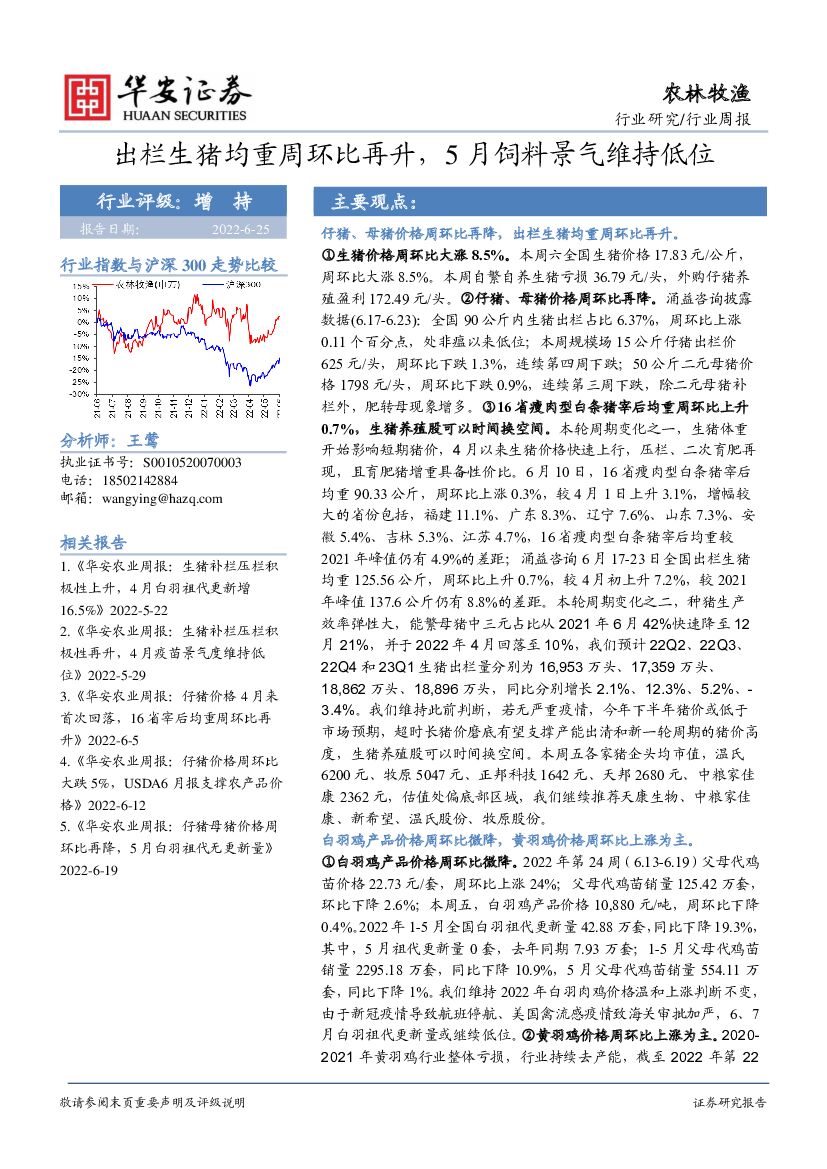华安证券:农林牧渔行业周报:出栏生猪均重周环比再升,5月饲料景气维持低位.pdf