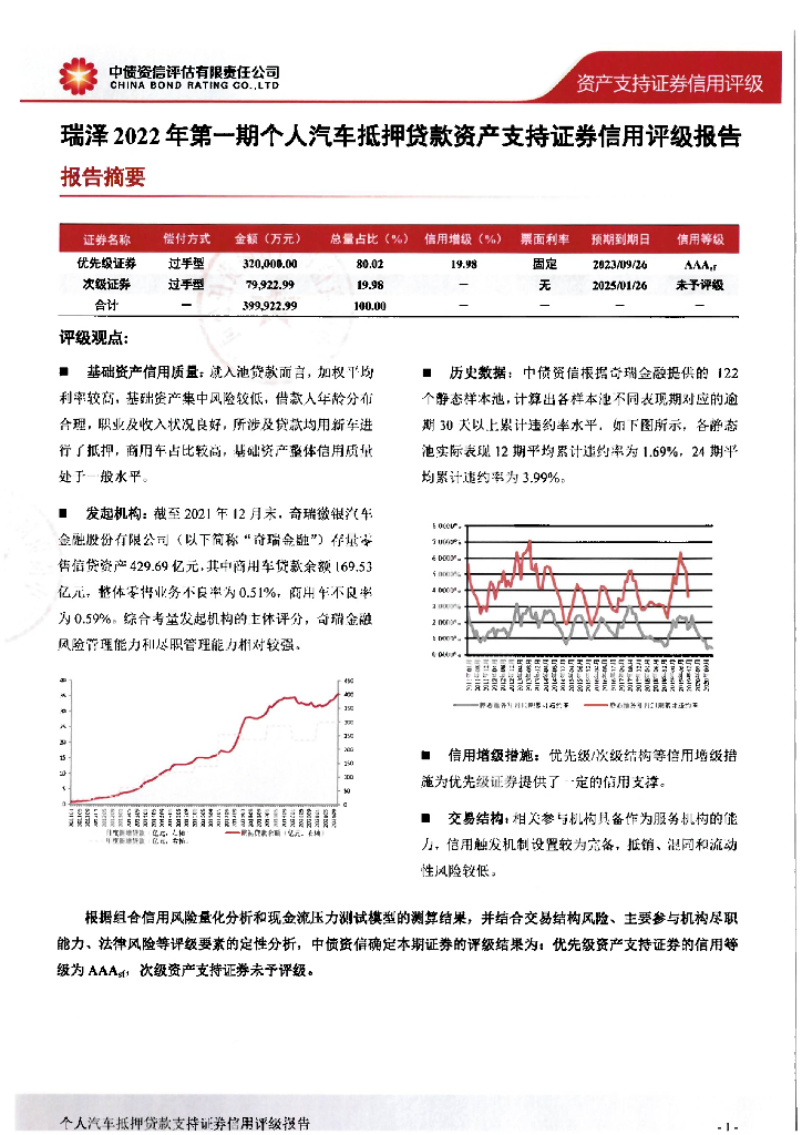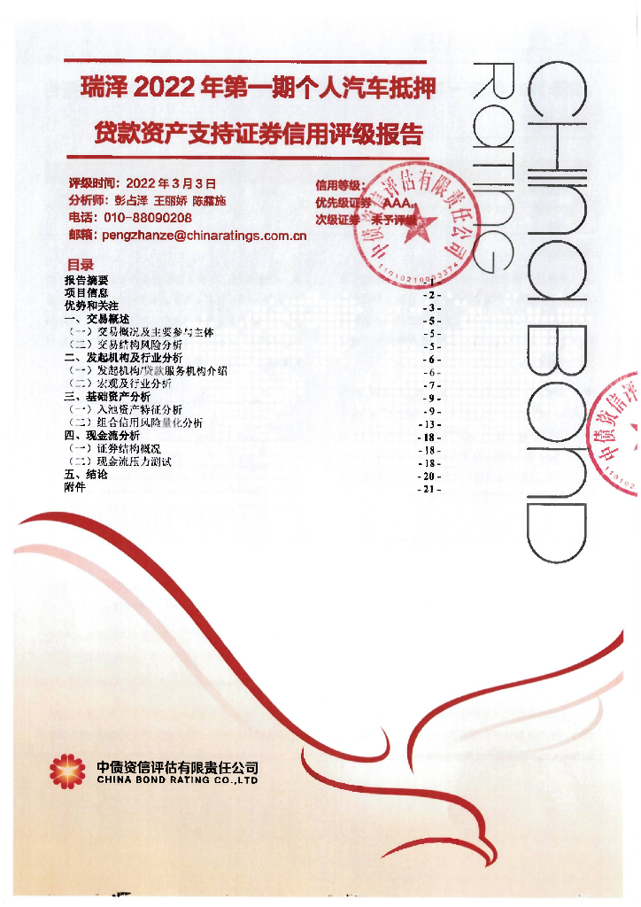 中债资信:瑞泽2022年第一期个人汽车抵押贷款资产支持证券信用评级报告.pdf