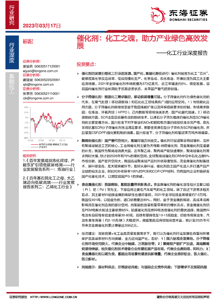 东海证券:化工行业深度报告:催化剂:化工之魂,助力产业绿色高效发展.pdf