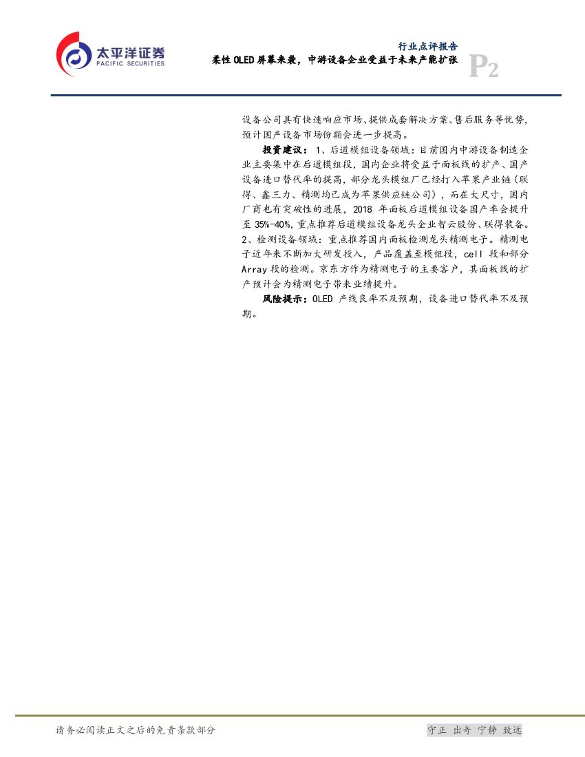 太平洋证券:机械行业点评报告:柔性OLED屏幕来袭,中游设备企业受益于未来面板产能扩张.pdf