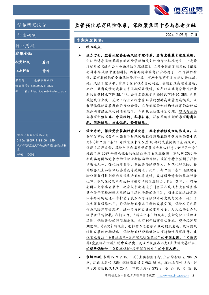 信达证券:监管强化券商风控体系,保险聚焦国十条与养老金融非银金融.pdf