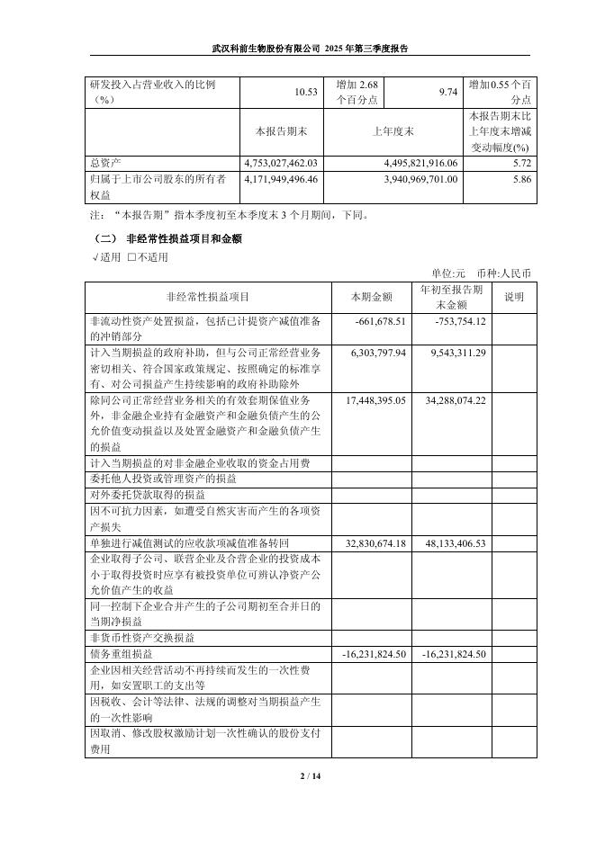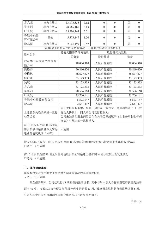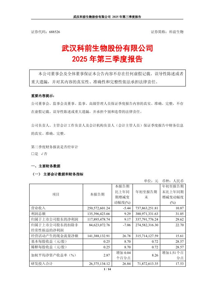 688526-科前生物:武汉科前生物股份有限公司2025年第三季度报告.pdf