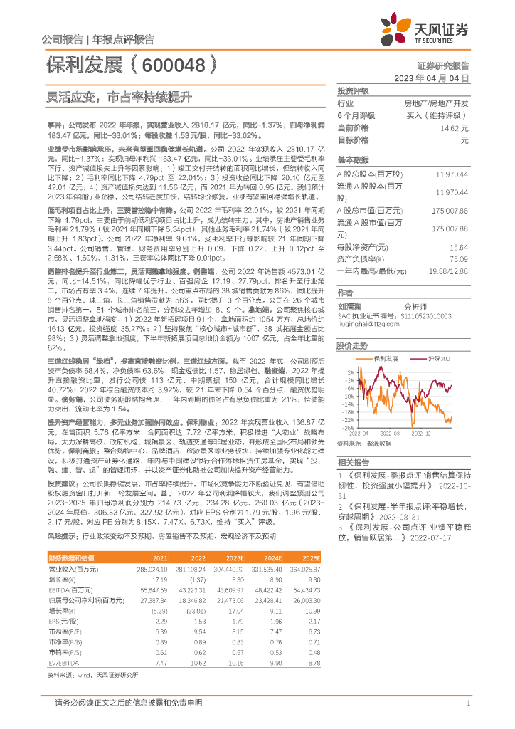 天风证券:保利发展(600048)-灵活应变,市占率持续提升.pdf
