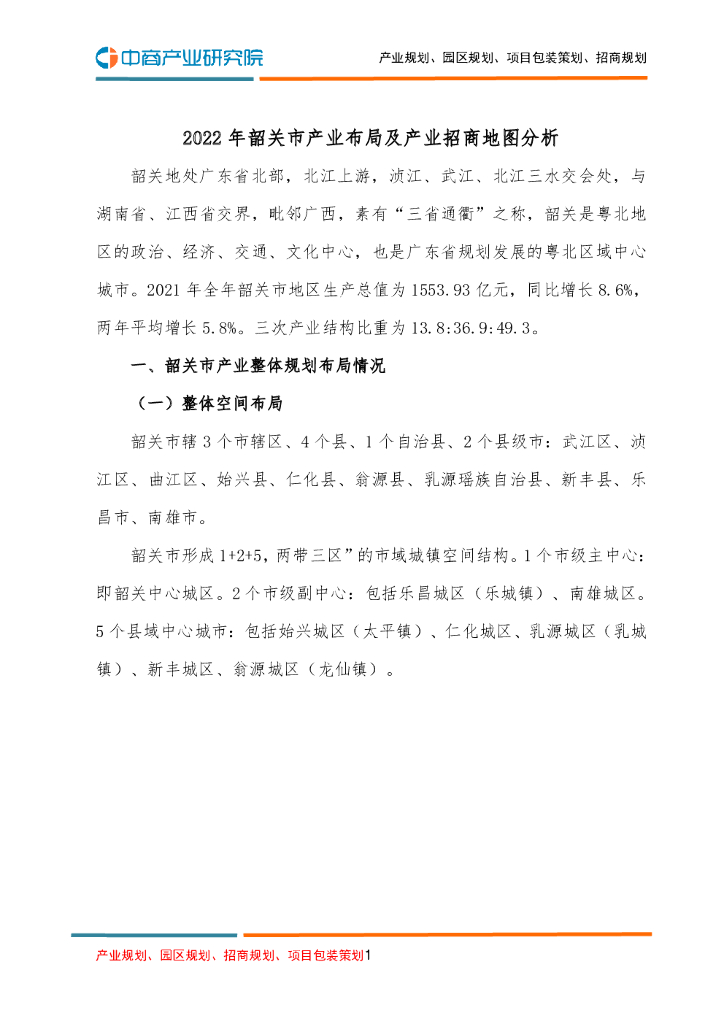 2022年韶关市产业布局及产业招商地图分析.pdf