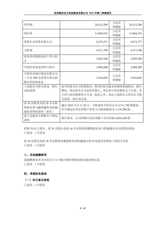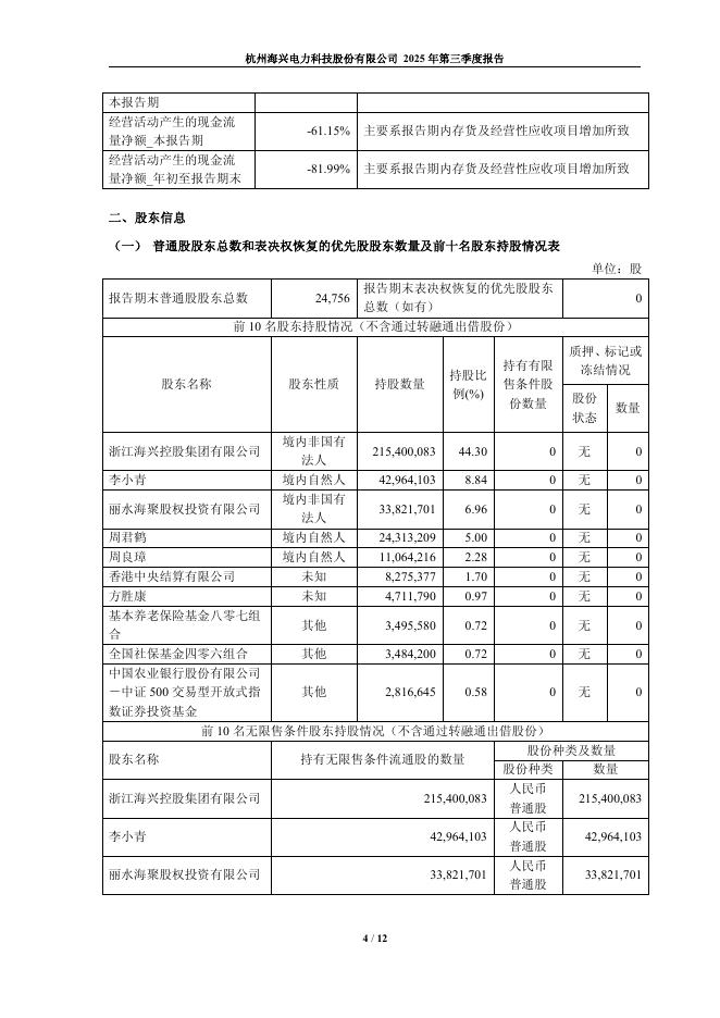 603556-海兴电力:杭州海兴电力科技股份有限公司2025年第三季度报告.pdf