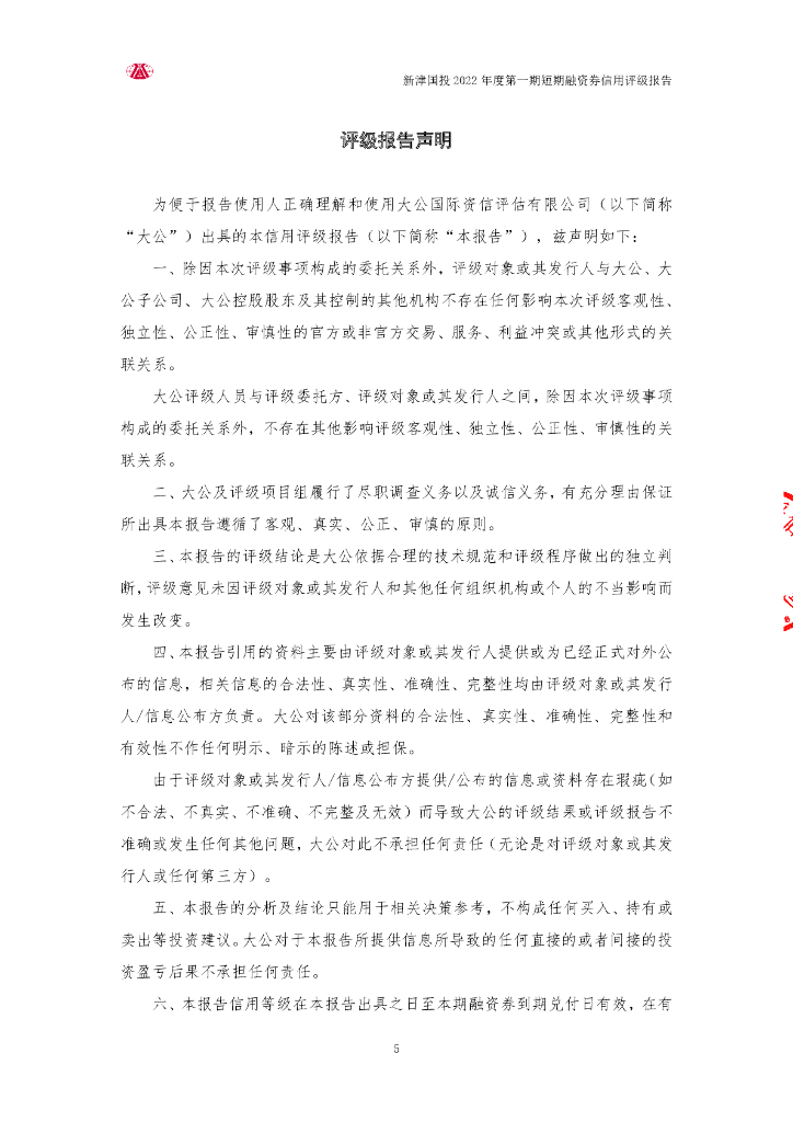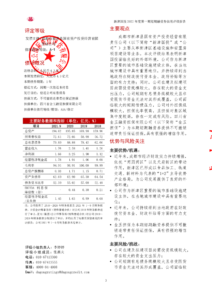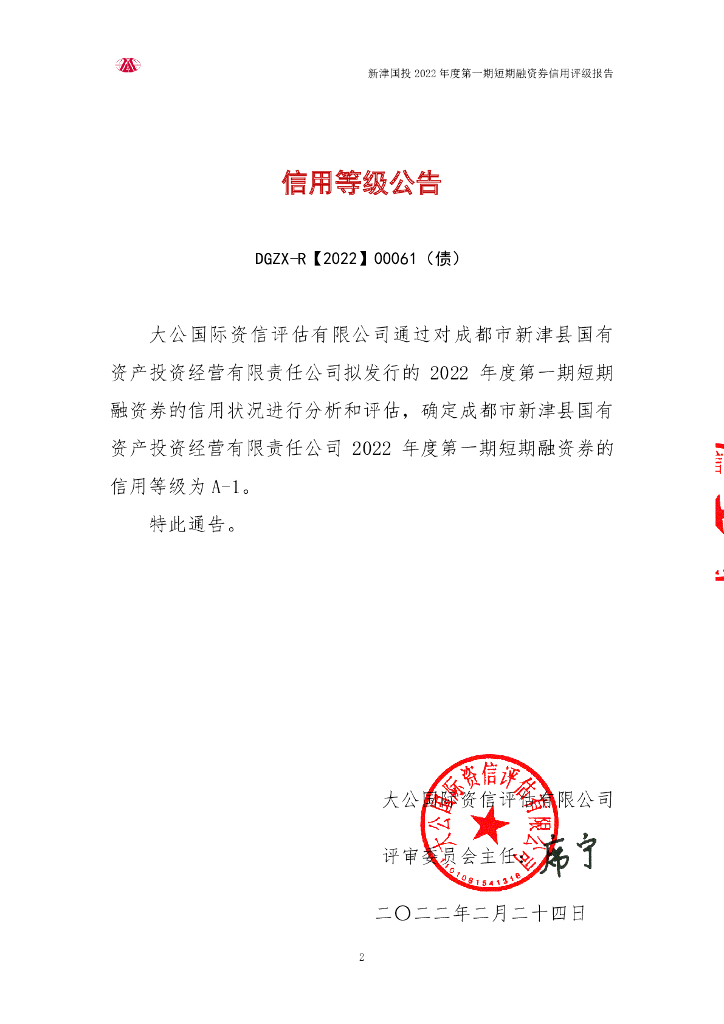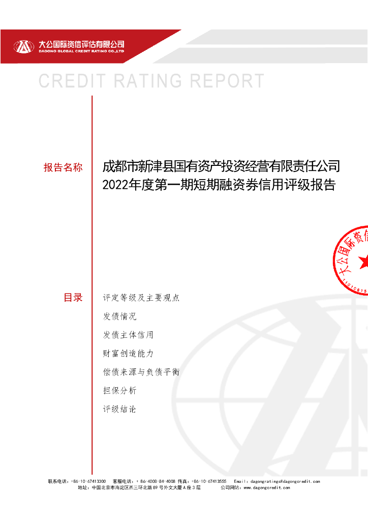 大公:成都市新津县国有资产投资经营有限责任公司2022年度第一期短期融资券信用评级报告.pdf