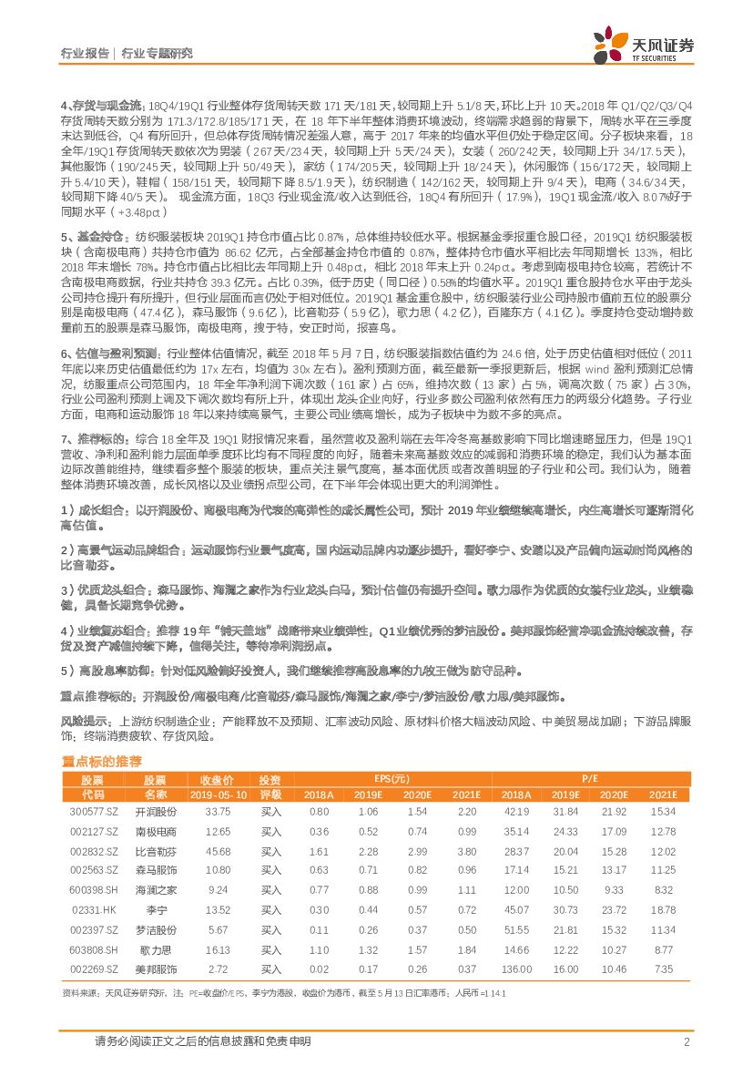 天风证券:纺服年报及一季报总结:18年电商和运动服饰子行业高增长,全行业19Q1业绩有所回暖.pdf
