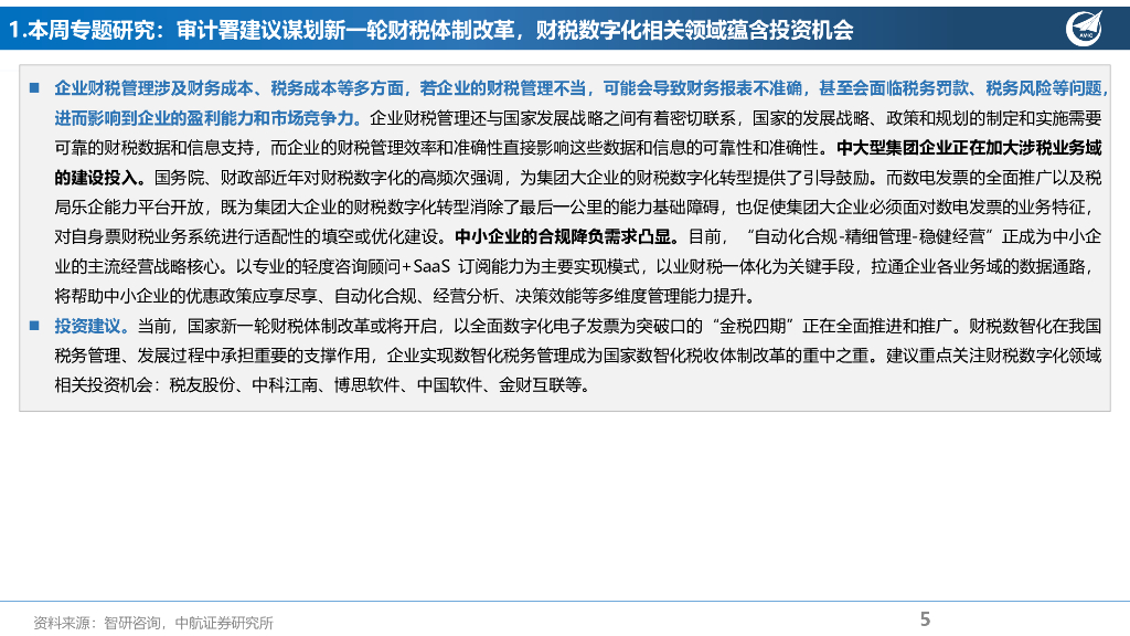 中航证券:先进制造行业周报:审计署建议谋划新一轮财税体制改革,财税数字化相关领域蕴含投资机会.pdf