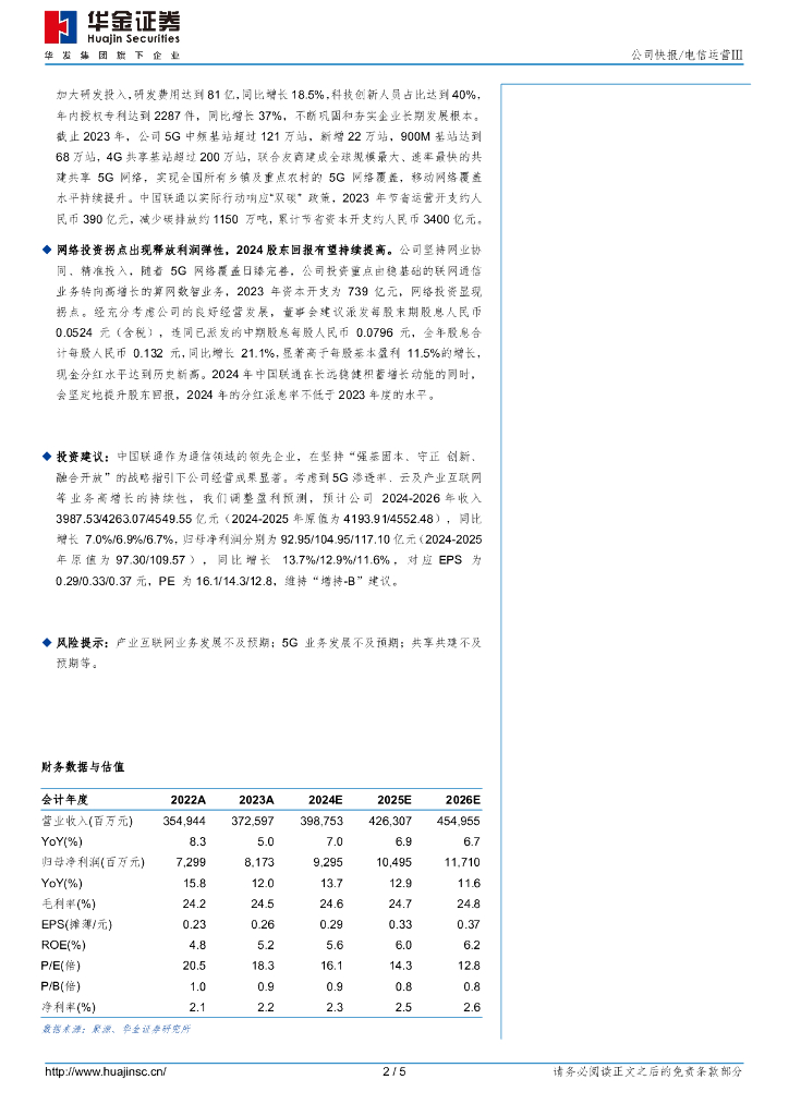 华金证券:中国联通(600050)-算网数智持续注入增长动能,2024股东回报有望新高.pdf