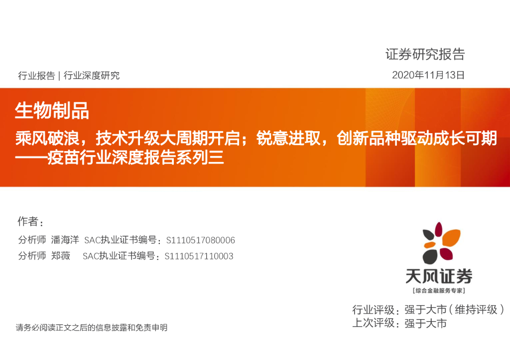 天风证券:疫苗行业深度报告系列三:乘风破浪,技术升级大周期开启;锐意进取,创新品种驱动成长可期.pdf