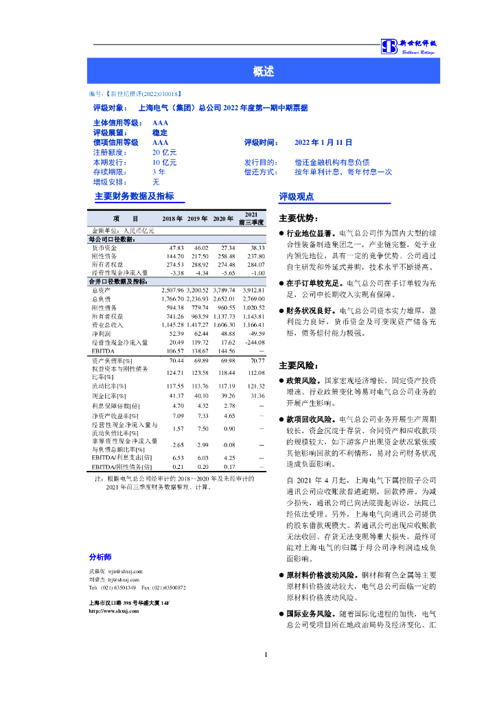 新世纪:上海电气(集团)总公司2022年度第一期中期票据信用评级报告.pdf
