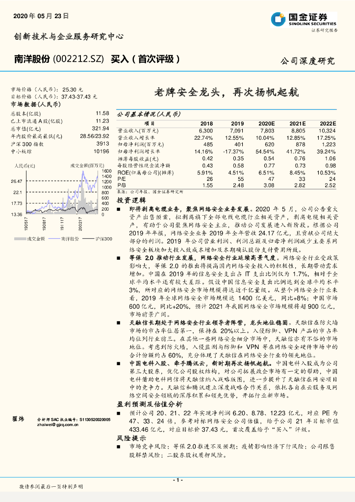 国金证券:南洋股份(002212)-老牌安全龙头,再次扬帆起航.pdf