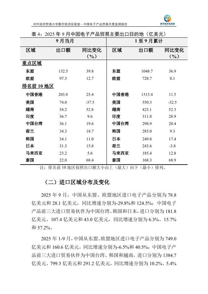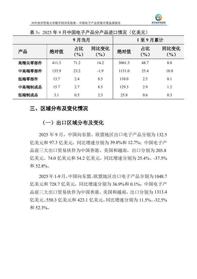 对外经济贸易大学:中国电子产品贸易月度监测报告(2025年1-9月).pdf