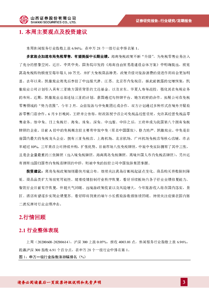 山西证券:社会服务行业周报:多家旅企加速布局免税零售,有望提振中长期业绩.pdf