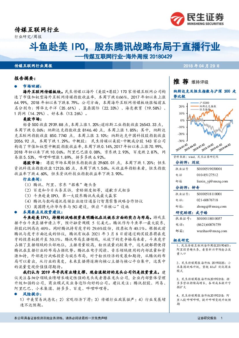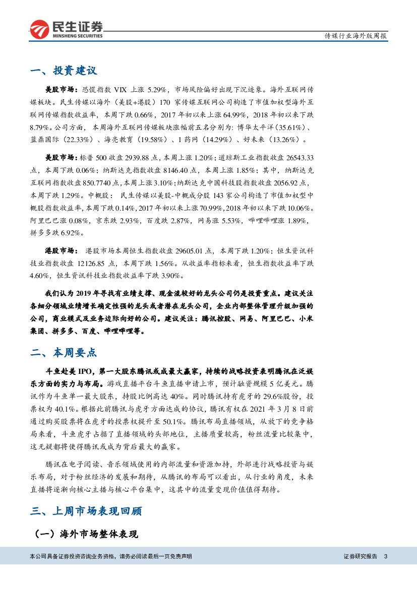 民生证券:传媒互联网行业-海外周报:斗鱼赴美 IPO,股东腾讯战略布局于直播行业.pdf