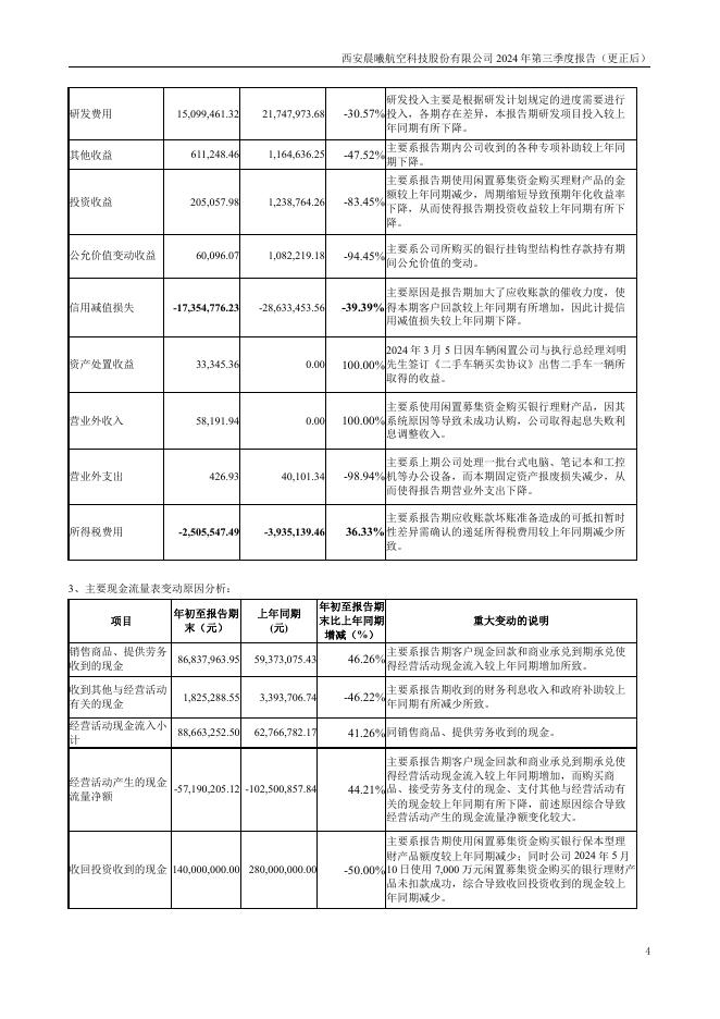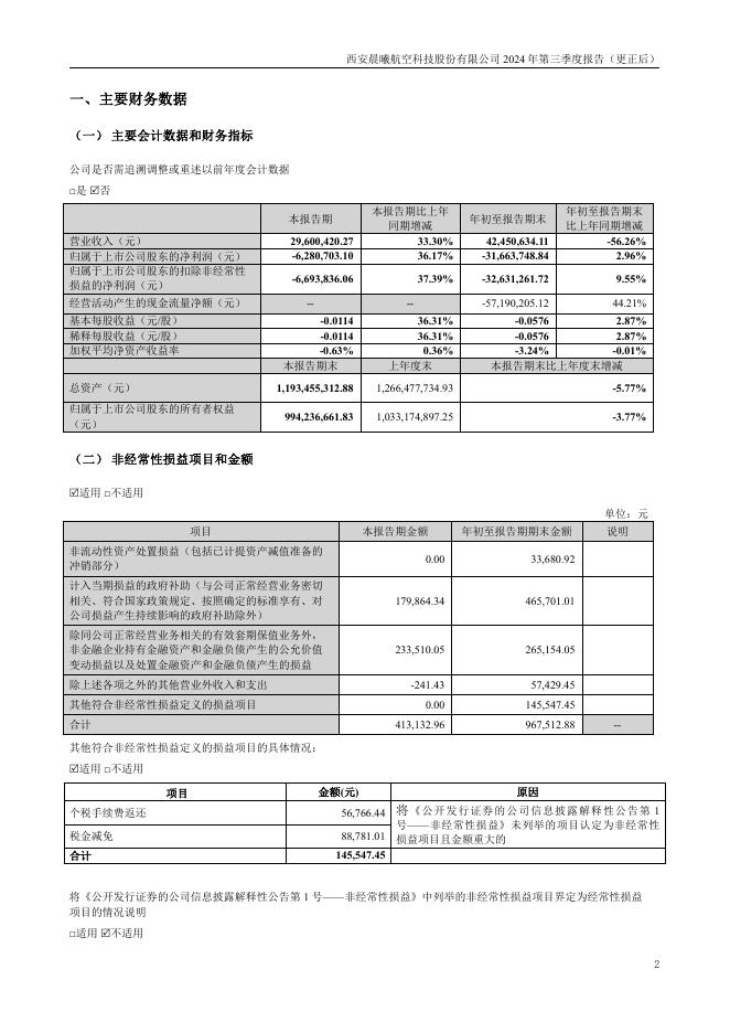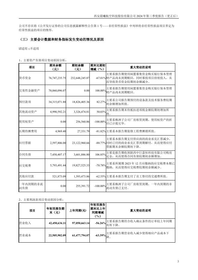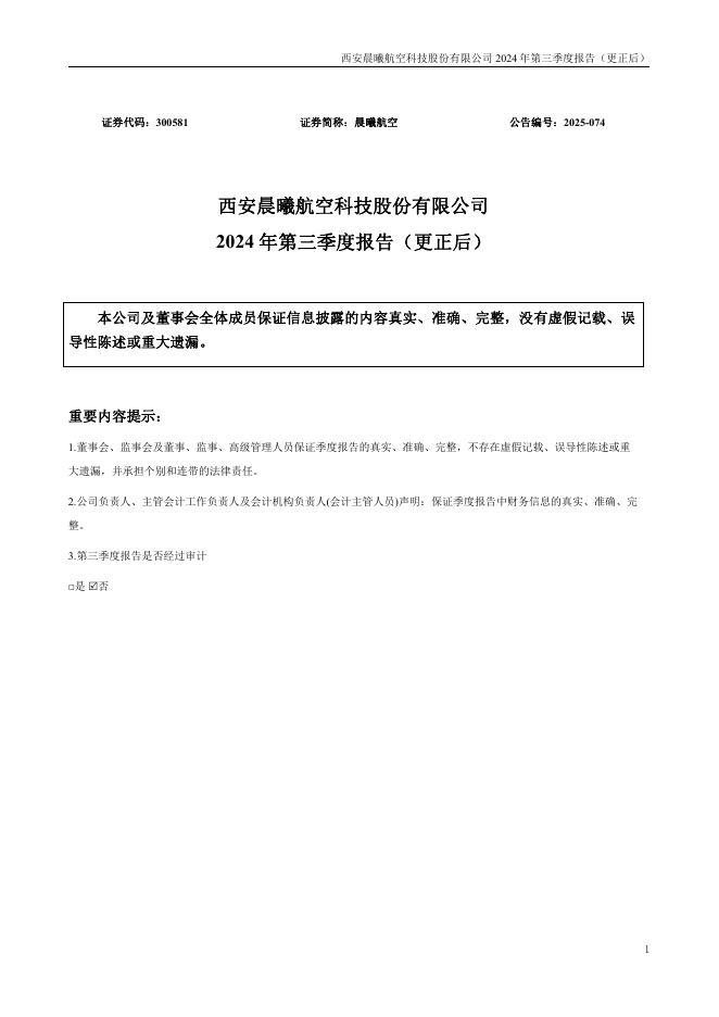 300581-晨曦航空:西安晨曦航空科技股份有限公司2024年第三季度报告(更正后).pdf