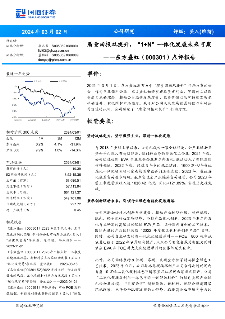 国海证券:东方盛虹(000301)-点评报告:质量回报双提升,“1+N”一体化发展未来可期.pdf